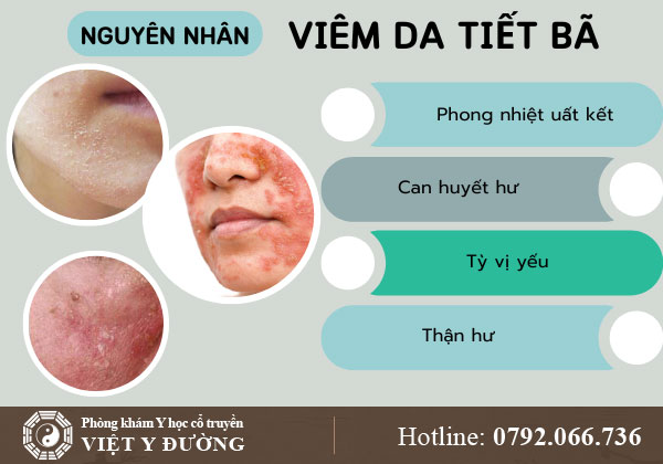 Viêm da tiết bã là tình trạng da bị đỏ, ngứa và bong tróc mảng, thường xuất hiện ở vùng da đầu, mặt, sau tai hoặc ngực. Theo Đông y, bệnh liên quan đến rối loạn chức năng gan, phế, thận và khí huyết không lưu thông.