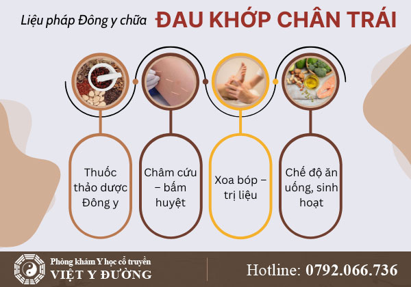 Chính vì vậy, nhiều chuyên gia khuyến khích áp dụng liệu pháp Đông y trong điều trị đau khớp chân trái. Đây là phương pháp an toàn, không xâm lấn, vừa giúp giảm nhanh sưng đau, tê cứng, vừa điều hòa khí huyết, phục hồi chức năng khớp và hỗ trợ ngăn ngừa tái phát lâu dài.