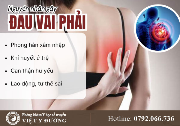 ➣ Phong hàn xâm nhập: Gió lạnh làm khí huyết ngưng trệ, gây đau nhức vai phải.