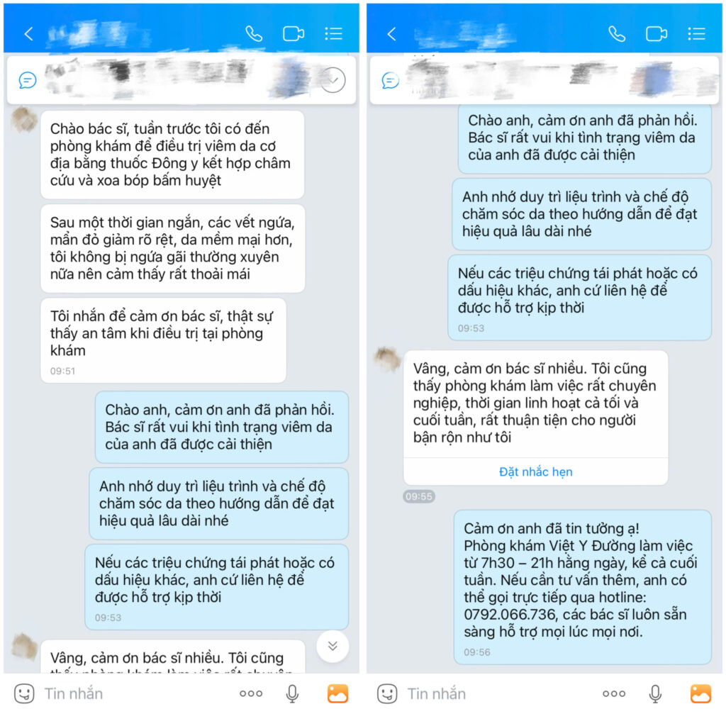 Phản hồi của bệnh nhân sau khi điều trị tại Phòng khám Y học cổ truyền Việt Y Đường