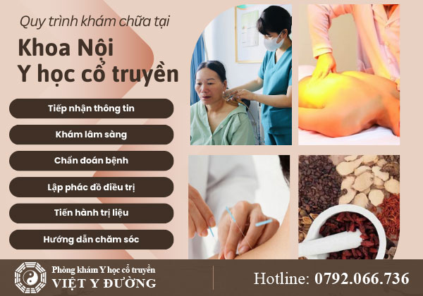 Tại Phòng khám Y học cổ truyền Việt Y Đường 470 Kinh Dương Vương, Phường An Lạc A, Quận Bình Tân, khoa Nội Y học cổ truyền áp dụng quy trình khoa học. Các bước được thực hiện rõ ràng, đảm bảo an toàn và hiệu quả cho người bệnh gồm:
