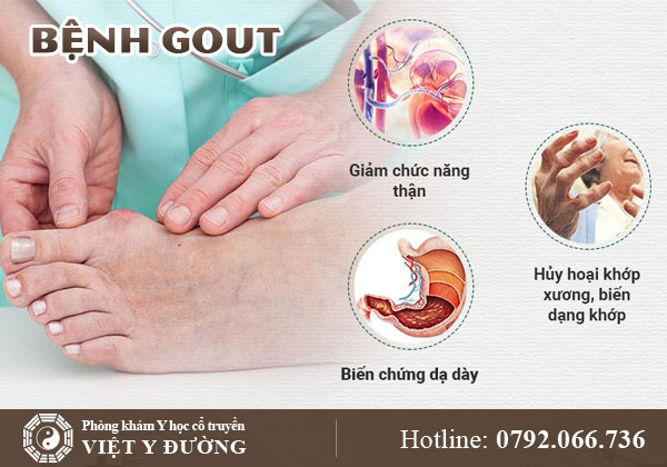 Nếu bệnh gout không được phát hiện và điều trị kịp thời, người bệnh có thể đối mặt với nhiều biến chứng nguy hiểm, ảnh hưởng nghiêm trọng đến sức khỏe: