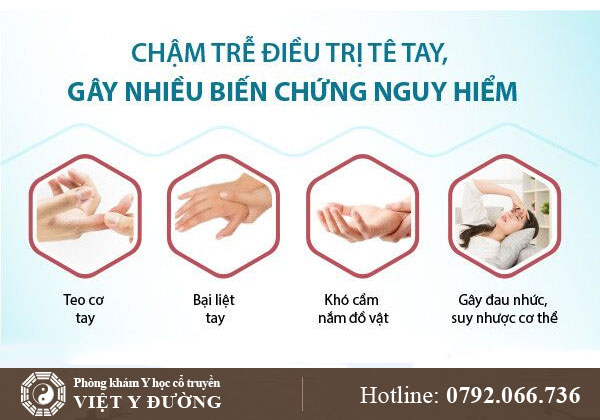 Tê tay dễ điều trị ở giai đoạn đầu, chi phí thấp. Khi có biến chứng, điều trị phức tạp và tốn kém hơn. Do đó phát hiện triệu chứng sớm và điều trị kịp thời sẽ giúp bảo vệ sức khỏe.