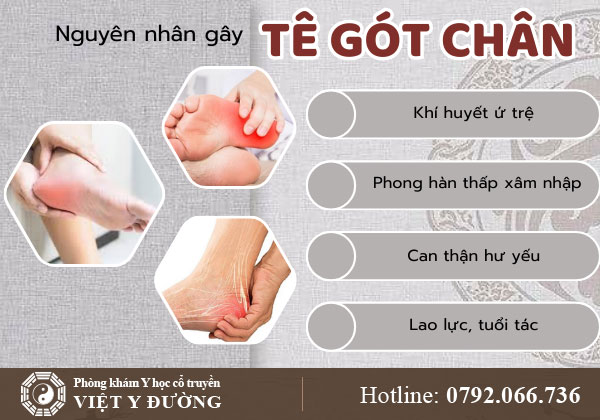 Can thận hư yếu: Đông y cho rằng thận chủ cốt tủy, can chủ gân. Khi thận và can suy yếu, gân cốt không được nuôi dưỡng đầy đủ, dễ dẫn đến đau tê gót chân.